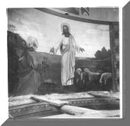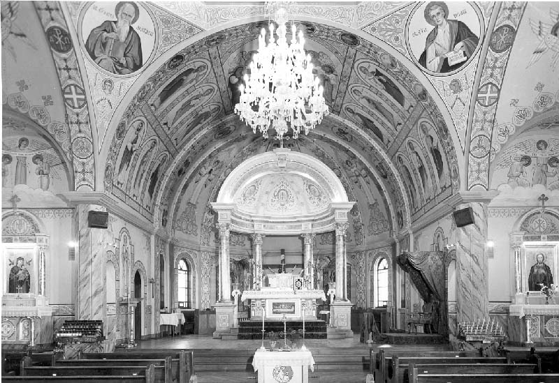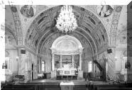 Original nave and sanctuary prior to 1968 redesign of artistic decorations. |