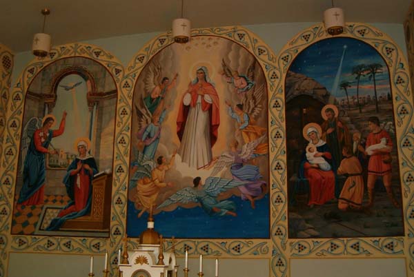 Antin Manastyrskyi was invited to decorate the Zhovtansi Dormition Ukrainian Catholic Church in 1919. War interupted the completion. |